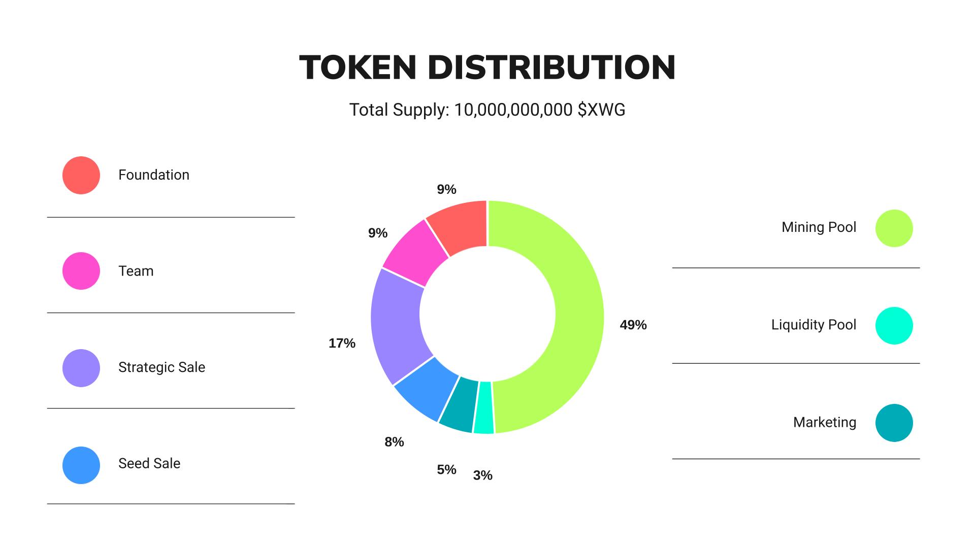 $XWG has a total supply of **10,000,000,000** tokens. Here is a breakdown of how these tokens will be distributed.